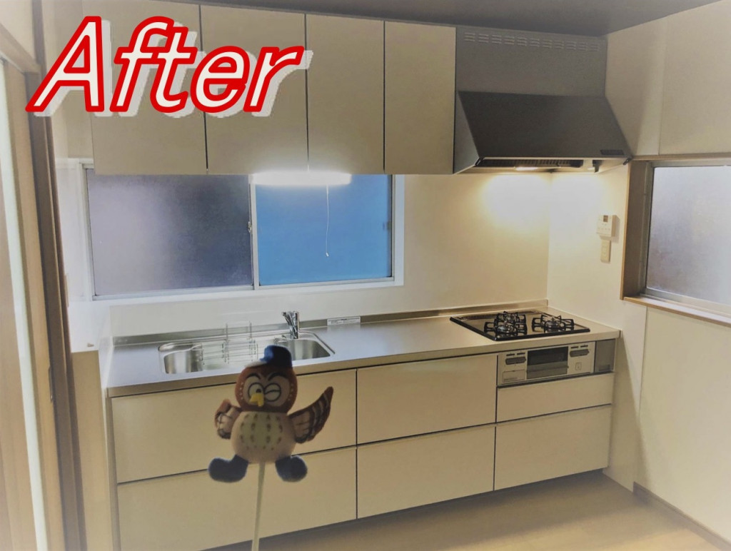 まずは、キッチン。以前は古いタイプのブロックキッチンでしたが、使いやすいシステムキッチンへ改修。お手入れ簡単、収納たっぷりのキッチンへと生まれ変わりました。