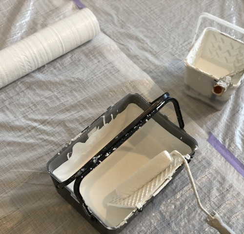1階は、縦列2台分の奥行きのガレージと事務所でした。そのスペースをお母様・お祖母様世帯のLDKと浴室・洗面室に。1階のクロスは全てお祖母様が選びました。